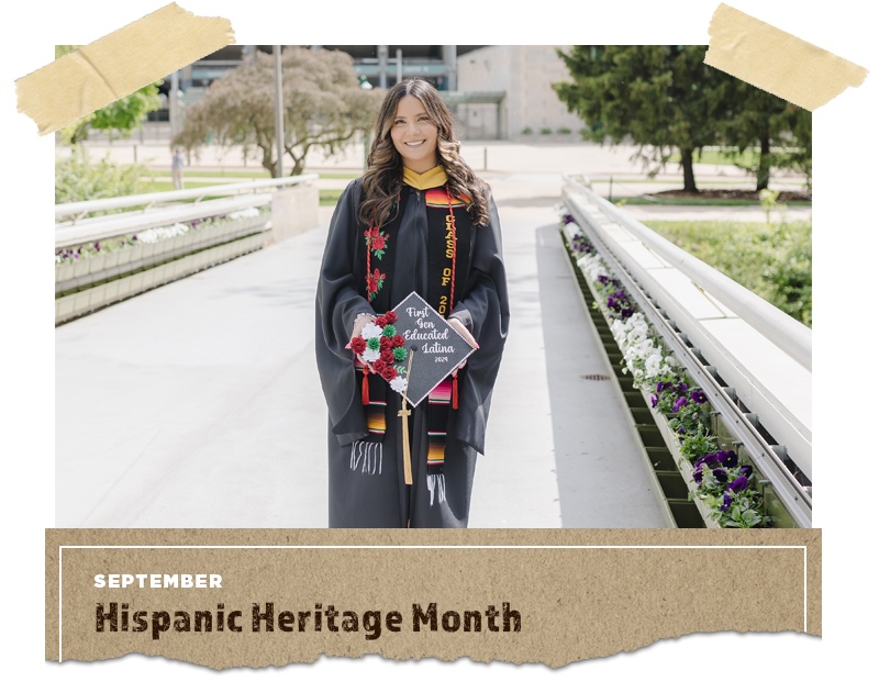 Photo: Natalie Rivera in her graduation gown and a cap that says 'first generation educated latina'